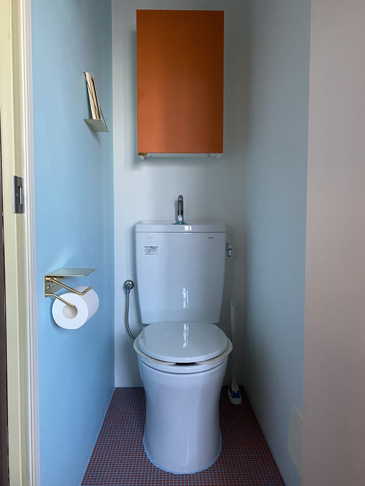 そんなこんなでオレンジとスカイブルーを組み合わせたトイレができあがったというわけ。