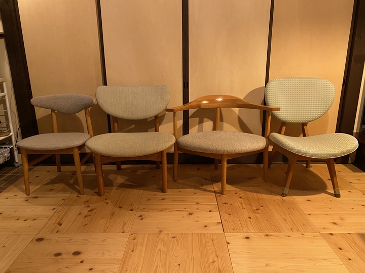 ただ、中古市場で簡単に見つかるのは天童木工の「中座椅子」くらいで、あとの3つはほとんど見かけません。自分が満足できる状態のものが出回るのをじっくり待つことができないなら、新品を購入するしかないでしょう。ちなみに、僕はこの4脚を6年かけて集めました。